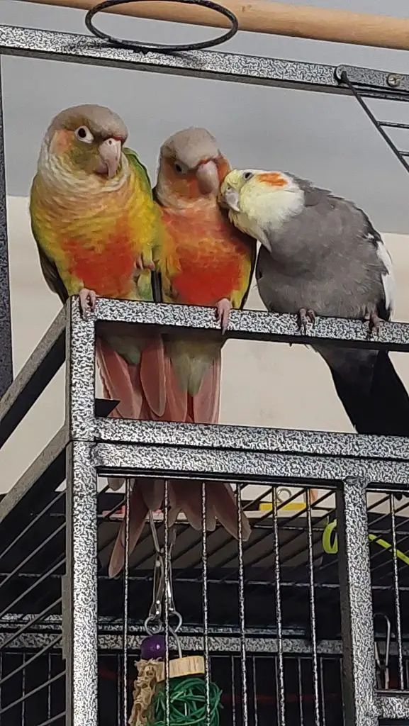 Roxy, Ruby and Moon (another one of the cockatiels)